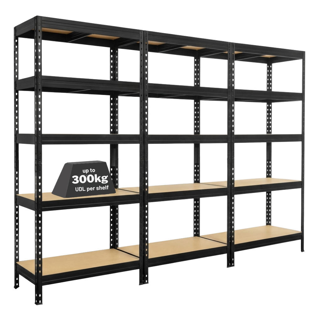Designed for garage storage and organisation, this heavy-duty shelving unit offers a strong and dependable way to store tools, equipment, storage boxes, and bulky items. Each shelf holds up to 300kg when evenly distributed (widths vary), making it perfect for heavy garage essentials.