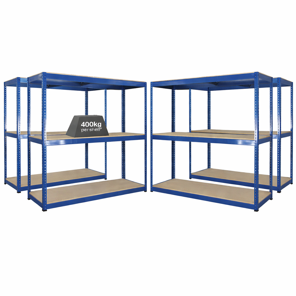 4x SX400 Industrial Shelving - 1677mm High - 400kg - Chipboard - Blue
