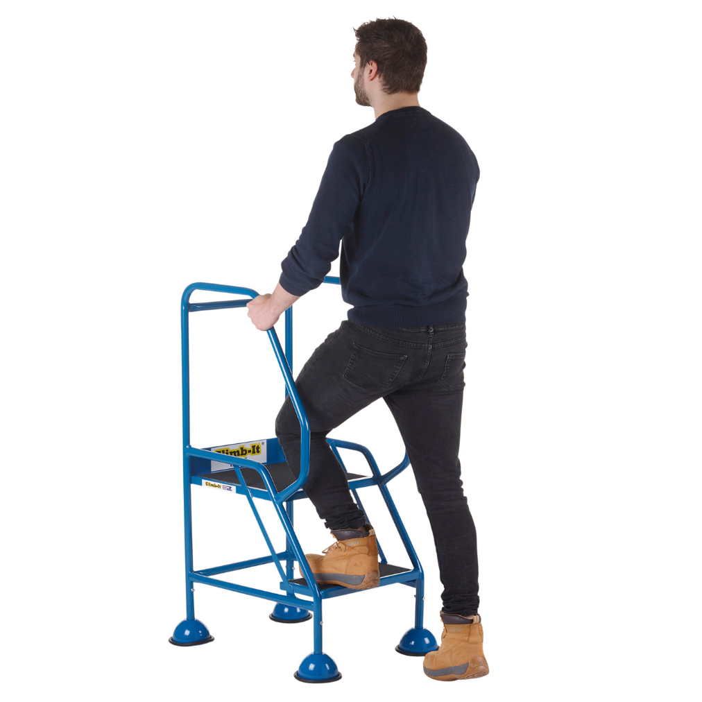 Mobile Safety Steps with Spring-Loaded Castors – 150kg Capacity