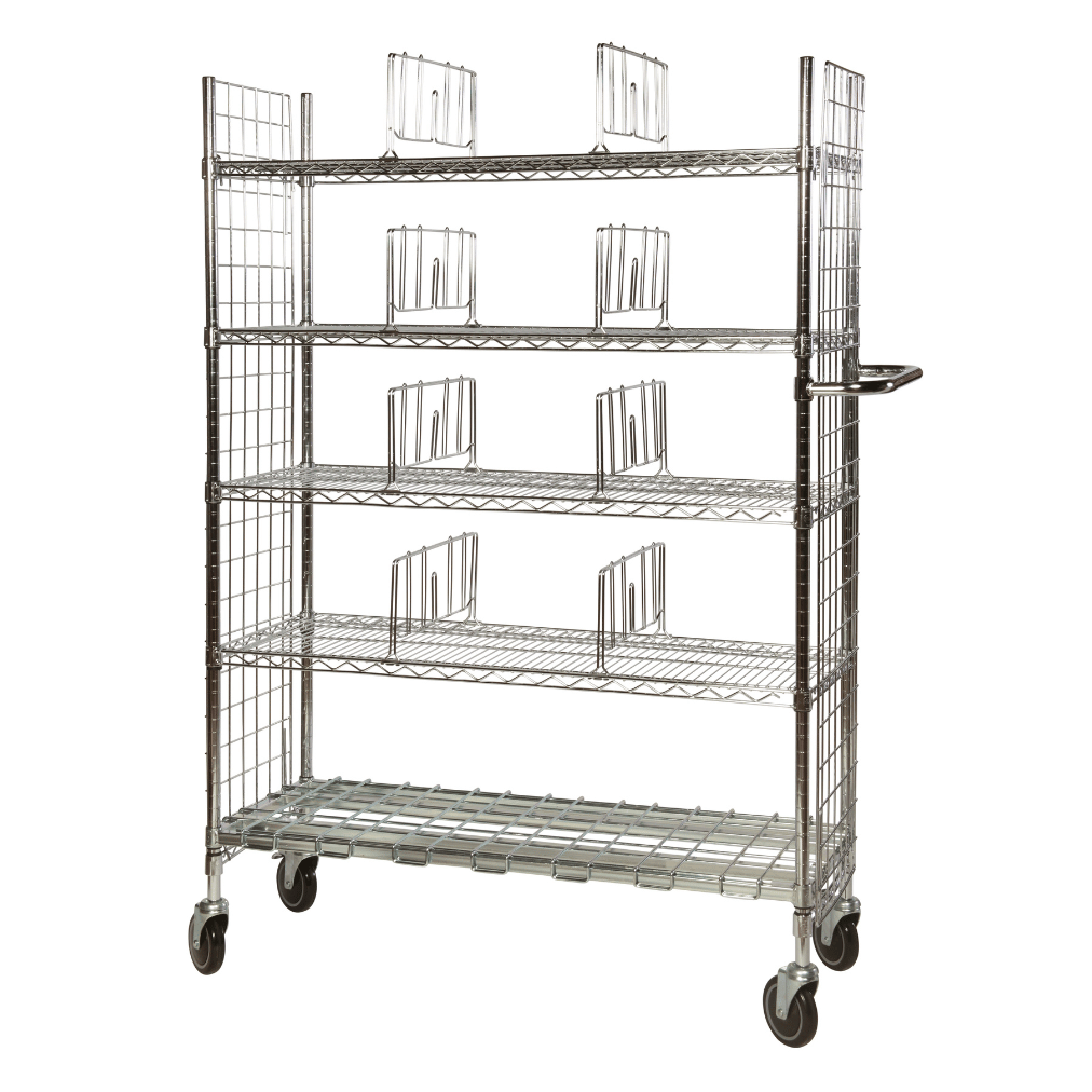 - Fully Equipped: Includes 4 chrome shelves, 1 heavy-duty dunnage shelf, side mesh panels, utility rails, dividers, and a short handle for complete functionality.